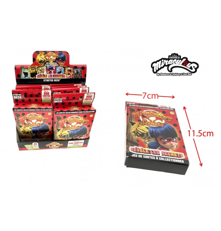 Découvrez le Starter deck Miraculous, un pack complet conçu pour vous plonger dans le monde de Miraculous Secrets et commencer à jouer rapidement ! Dans ce Starter deck, vous trouverez un deck parfait de 29 cartes préconstruites avec Adrien, Marinette, Ladybug, Hawk Moth et 10 autres personnages, 12 cartes bonus pour les rendre plus forts et 3 cartes événements pour bien commencer la partie.