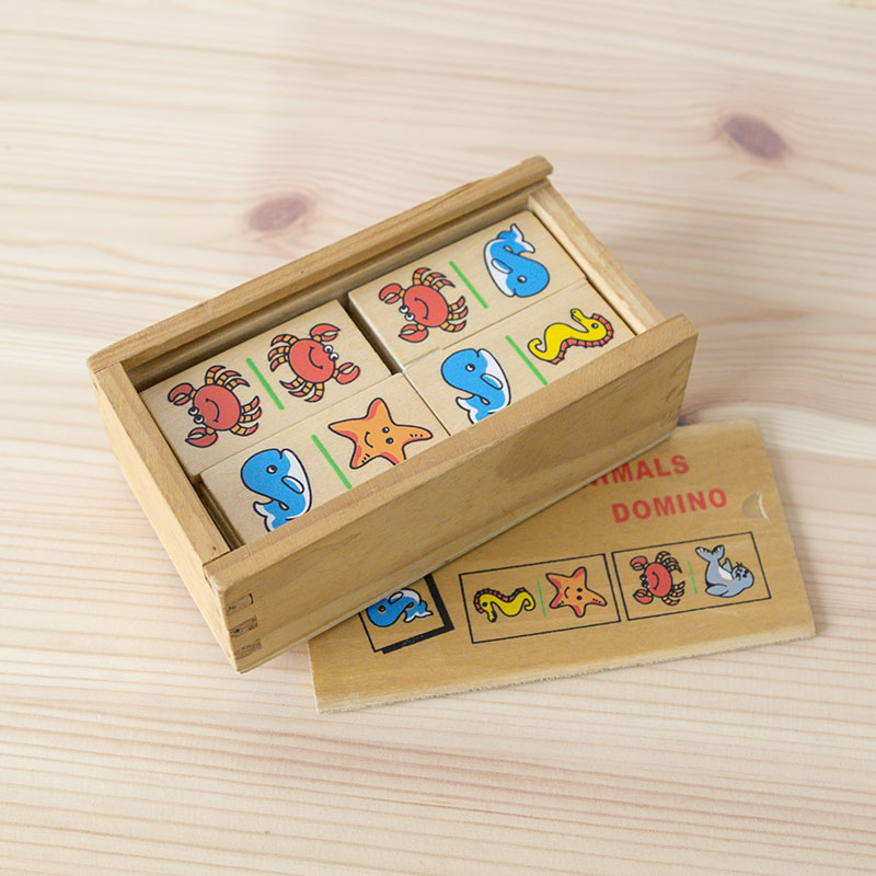 Jeu de domino animaux des océans en bois. Il est en très bon état !